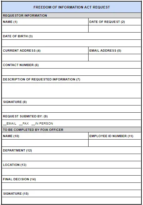 Which box below should NOT include the FOIA officer’s information?